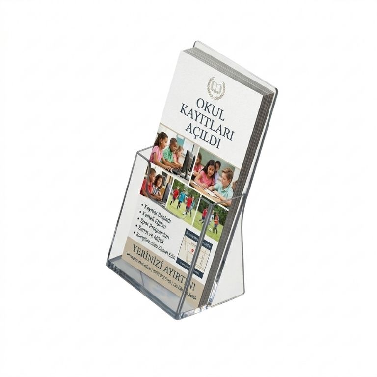 Akrilik broşürlükler, şeffaf yapısı sayesinde içindeki broşürlerin kolayca görülmesini sağlar.
