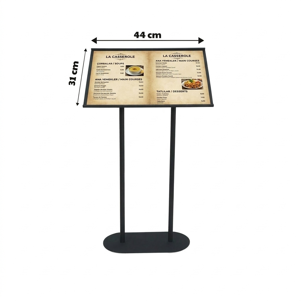Restaurantlarda, Cafelerde, Lokantalarda Kapı Önünde Kullanılan, Menülerinizi Fiyat listesini koyabileceğiniz ayaklı standtır.