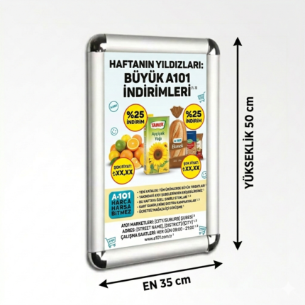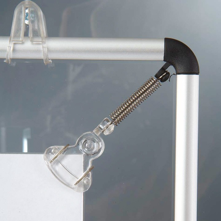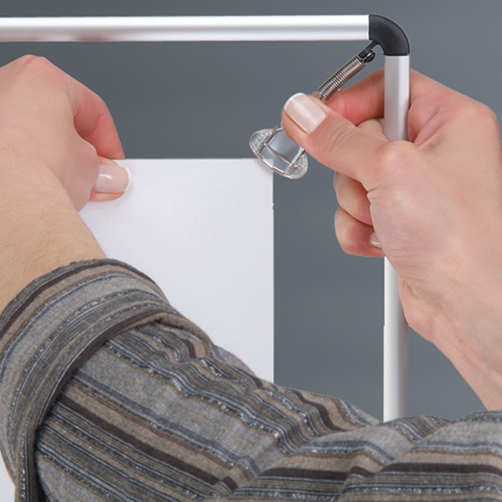 Plastik klipsler posterin kolayca değiştirilmesini ve aşınmamasını sağlar.